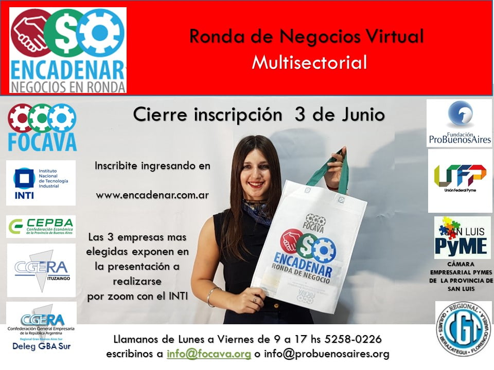 «Esta herramienta, como cuando lo hacíamos de manera presencial, fue desarrollada por la Fundación Pro Buenos Aires y la Cámara de Empresarios Bonaerenses para el Fortalecimiento de las Cadenas de Valor (FOCAVA) y ya superó las 800 empresas inscriptas participando» explicó Facundo Galdós, mentor de éstos encuentros que hoy son una herramienta indispensable para las Pymes de la región y el país.