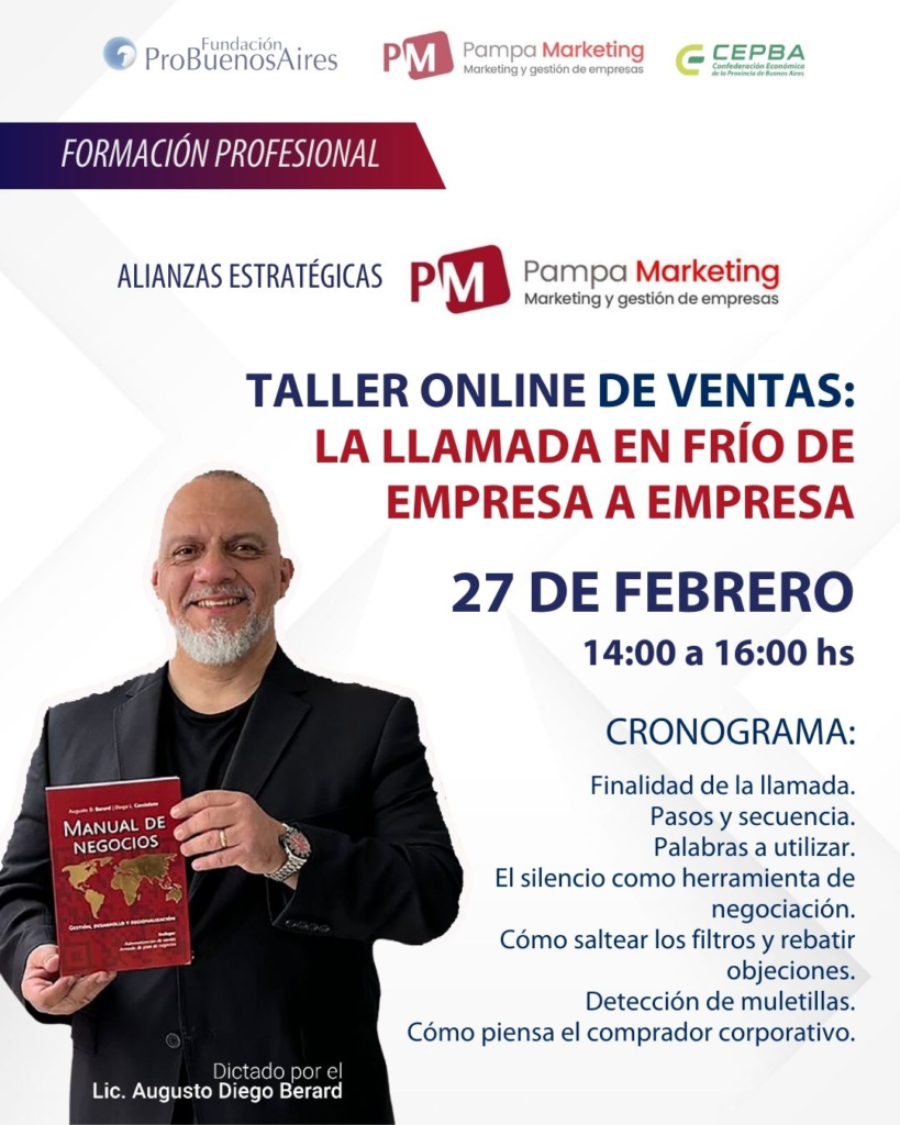 El próximo taller de ventas organizado por Pampa Marketing, programado para el 27 de febrero.